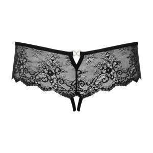 Chilot tanga din dantela elastica cu decupaj inghinal Merossa crotchless panties, black – S/M