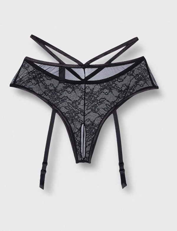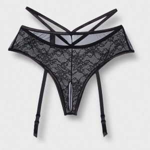 Chilotei negri din dantela florala si tul fin cu barete subtiri pe solduri. Sunt prevazuti cu decupaj in zona intima si jartiere ajustabile. Culoare: negru. Marime: M/L. Ciorapii nu sunt inclusi! Marime: M/L (echivalentul marimilor 40-44): Talie: 74-82 cm, Solduri: 98-106 cm Compozitie: 80% Poliamida, 20% Elastan