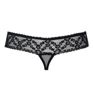Chilotei de la Obsessive din tul si dantela elastica cu motive florale, prevazuti cu decupaj inghinal. Culoare: negru. Marime: L/XL. combinația perfectă de îndrăzneală și eleganță pentru o seară plină de fantezii! Acest tanga este conceput pentru a-ți pune în valoare formele și pentru a adăuga un strop de îndrăzneală fiecărui moment. Detalii irezistibile: Design seducător: Tanga ce dezvăluie posteriorul, accentuând senzualitatea. Combinație rafinată: Dantelă și plasă transparentă, pentru un efect vizual captivant. Deschizătură provocatoare: Crotchless pentru momente de experimentare pline de pasiune. Accente elegante: Pliseuri delicate, o fundiță și un bijou strălucitor (NickelFree), care adaugă un strop de rafinament. Material confortabil: Fabricat din 94% poliamidă și 6% spandex, pentru o senzație plăcută și o potrivire elastică. Acest Frivolous Thong este ideal pentru momentele în care vrei să îți exprimi latura îndrăzneață și să aduci un strop de mister și rafinament garderobei tale intime.