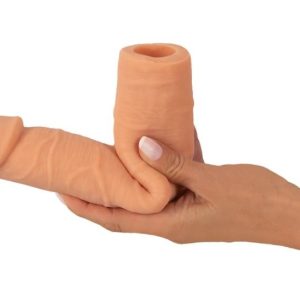 Manșon pentru penis cu o extensie de 7 cm lungime. Face penisul cu 2 cm mai gros. Lungime completă 24 cm, adâncime de introducere 17 cm, diametru interior 3 cm (foarte flexibil), diametru exterior max. 5 cm. Manșon pentru penis cu o extensie de 7 cm lungime Face penisul cu 2 cm mai gros Potrivirea strânsă susține erecția Gland și vene pronunțate Piele naturală asemănătoare pielii pentru o senzație realistă Elastic și flexibil Pentru un penis extrem de lung și gros cât ai clipi! Manșonul pentru penis Extension Sleeve de la Nature Skin face penisul cu 7 cm mai lung și cu 2 cm mai gros. Manșonul cu vene pronunțate și gland bombat poate fi ușor plasat peste penis și apoi poate fi folosit pentru momente profunde și împlinitoare de plăcere. Maneca este realizata dintr-un material moale, elastic (Nature Skin), care arata ca o piele reala si se simte la fel de moale. Este elastic și flexibil, ceea ce înseamnă că se poate potrivi în siguranță în jurul penisului și poate susține eficient erecția datorită potrivirii sale minunate. Lungime completă 24 cm, adâncime de introducere 17 cm, diametru interior 3 cm (foarte flexibil), diametru exterior max. 5 cm. Greutate 254 g. Fabricat din TPE.