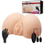 Adaugati realism si placere in noptile de singuratate cu acest masturbator Crazy Bull. Forma sa imita un posterior perfect, cu vagin si anus, astfel incat sa va puteti alege cu usurinta intre cele doua moduri de satisfacere.Cele doua canele sunt puternic structurate, stramte si se muleaza exceptional pe orice dimensiune de penis. Pentru senzatii care te vor nauci, in pachet sunt incluse si 2 gloante vibratoare ce se ataseaza impreuna sau separat la o telecomanda. Functia de multispeed este reglata de la rotita si functioneaza cu 3 baterii de tip AAA, neincluse. Include lubrifiant pe baza de apa.Dimensiuni :Lungime: 21 cmLatime: 22,5 cmGrosime: 13 cm