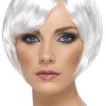 Peruca blonda cu parul scurt si coafura speciala a anilor 60.
