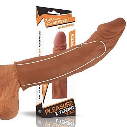 Prelungitor penis Pleasure X-Tender 18cm- Mulatru. Prelungitor din material moale ce prelungeste cu 5cm. Capul este plin dar foarte moale. Diametru cap: 4cm Prelungitor penis din material TPE, moale si foarte flexibil ce imita pielea umana. Prelungeste penisul cu 5cm in lungime si 0,8cm in grosime. Capul este plin dar foarte moale. Lungime manson: 18cm Lungime inserabila (spatiu gol interior): 13cm Diametru cap: 4cm Materialul este flexibil (se muleaza pe penis) Se poate taia dupa dimensiunea dumneavoastra. Peretele mansonului este foarte subtire : 0,4cm diametru Culoare disponibila:mulatru