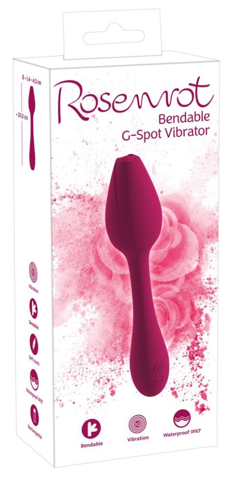 Vibrator reincarcabil cu cap flexibil cu designul unui trandafir inchis, pentru stimularea punctului G si a clitorisului. 10 moduri de vibratie. Roz. Lungime totala 20 cm, diametru 4 cm. Vibrator reîncărcabil Cap flexibil pentru stimularea punctului G și a clitorisului 10 moduri de vibrație Impermeabil Inclusiv cablu de încărcare USB Mângâie punctul G cu un trandafir închis! Vibratorul Bendable G-Spot de la Rosenrot oferă o stimulare țintită: vârful conic din designul unui trandafir închis masează punctul G sau clitorisul cu 10 moduri de vibrație versatile. Suprafața mângâietor de moale asigură că alunecă aproape de la sine. De asemenea, este rezistent la apă pentru distracție în baie și duș. Cablu de incarcare USB inclus. Lungime totala 20 cm, diametru 4 cm. Fabricat din Silicon, PU.
